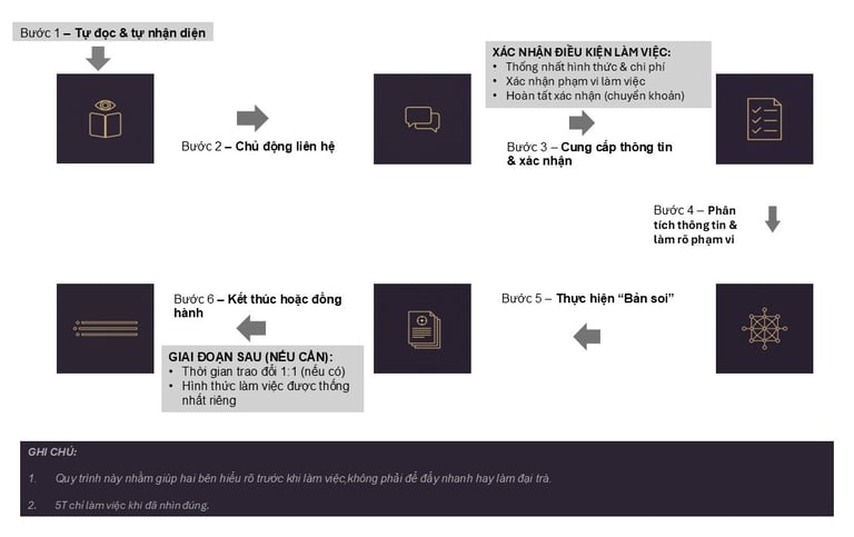 Quy trình này mô tả cách hệ 5T được tiếp cận và làm việc, không phải lộ trình dịch vụ hay hướng dẫn áp dụng.